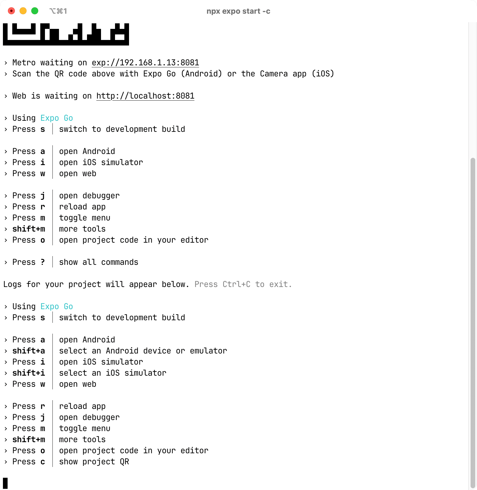When you run the npx expo start command, you must have seen the familiar developer server output: