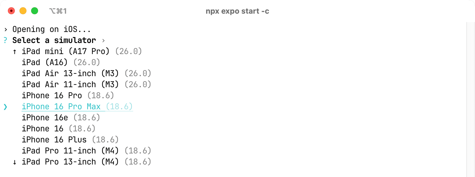 Opening a React Native app created with Expo in an iOS simulator is a common developer task. By default, the app opens in the last used iOS simulator. In my case, I frequently use the iPhone 17 Pro simulator right now which runs iOS 26 version.